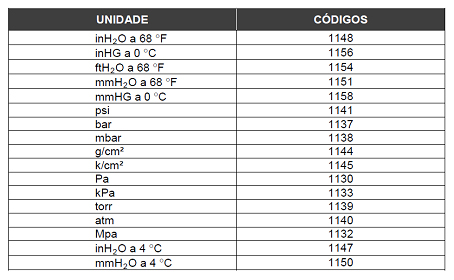 Os códigos da unidade de engenharia seguintes estão definidos para a pressão de acordo com padrão Profibus PA: