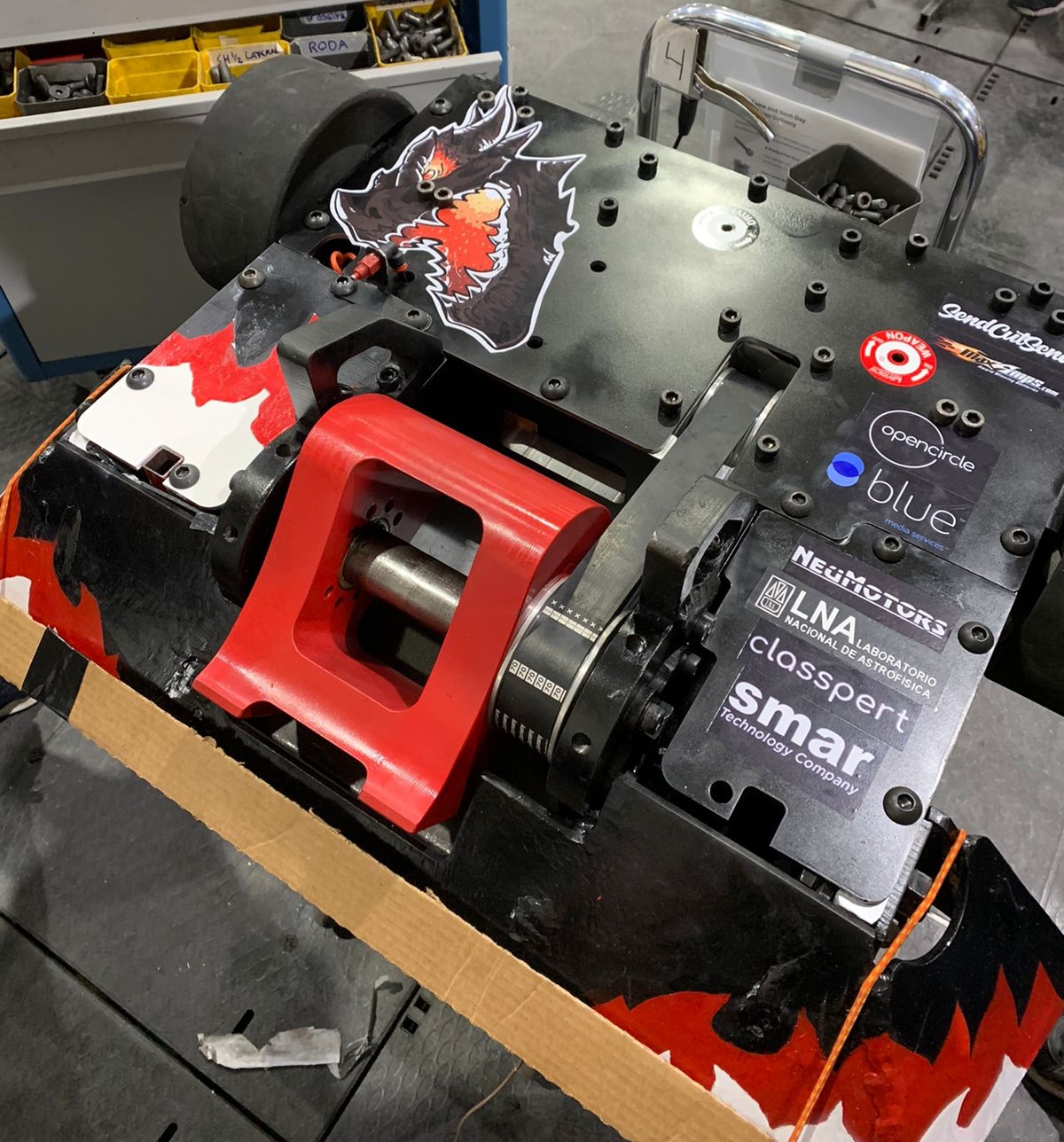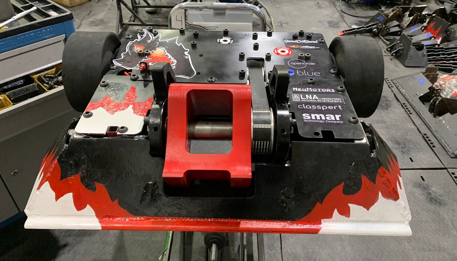 "A Nova Smar começou a patrocinar a equipe depois de uma iniciativa do ex-aluno da UNIFEI Edner Pontes e por intermédio do ex-membro da Equipe e ex-aluno da UNIFEI Octavio Paschoal em nos procurar. Ele nos sugeriu entrar em contato com a empresa, pois trabalha lá há um tempo. Comentou sobre a expansão da divulgação internacional da mesma, e salientou que poderia ser algo produtivo para dois lados, e então iniciamos as negociações. O senhor Ricardo Argolo, diretor executivo da Nova Smar e ex-aluno da UNIFEI, visitou a nossa oficina em Itajubá e tivemos a oportunidade de mostrar na pratica como é o combate de robôs e foi quando assinamos o contrato".